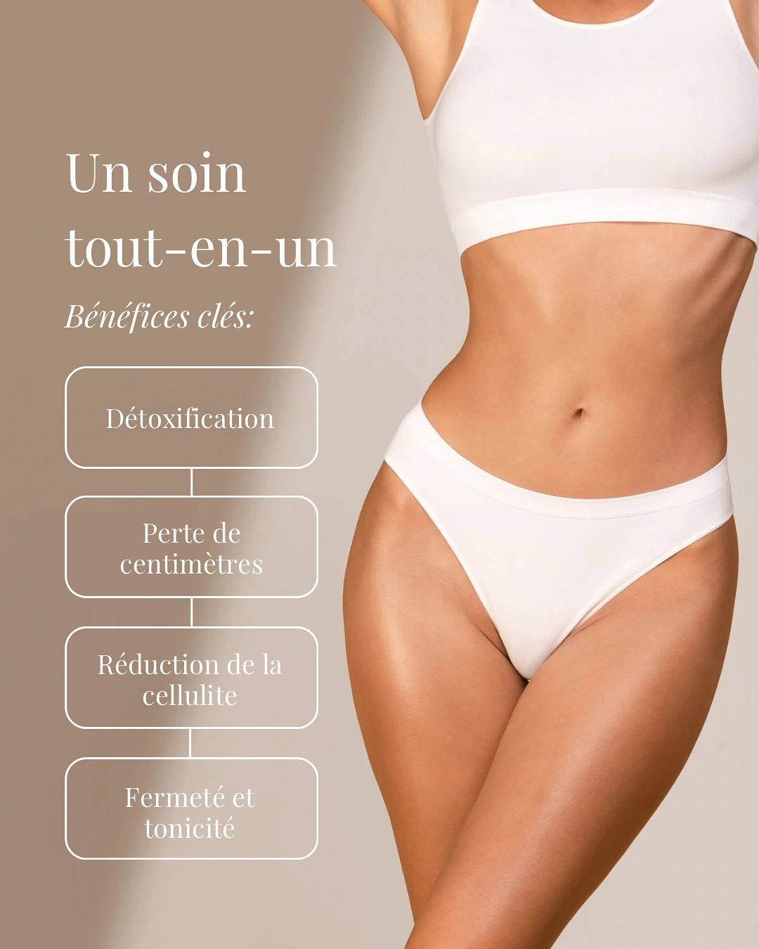 Enveloppement personnalisé : drainant, raffermissant ou amincissant selon vos besoins.